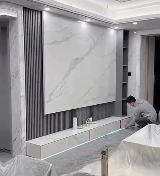 Warm wooden paneling aur sleek white cabinets ka perfect blend, ye media wall aapke living room ko modern aur organized look deta hai. Minimal design ke sath luxury ka subtle touch, har décor me seamlessly fit hota hai.
