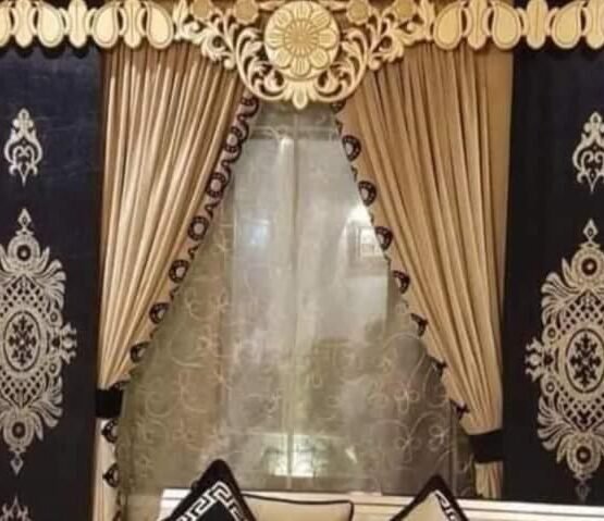 Rich golden shade ke sath ye curtains aapke room ko warm aur cozy feel dete hain. Sheer white layer natural light ko softly filter karti hai, jo har space ko elegant banati hai.
