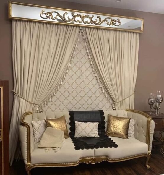Soft golden drapes aur bold grey weave ka elegant fusion, jo har room ko classy aur luxury touch deta hai. Contemporary aur traditional décor dono ke liye perfect.