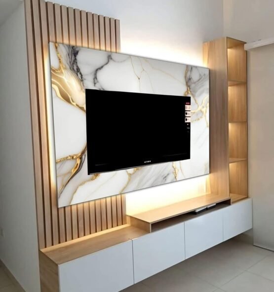 Elegant design aur smart storage ke sath, ye media wall room me ek refined aur polished look introduce karti hai.