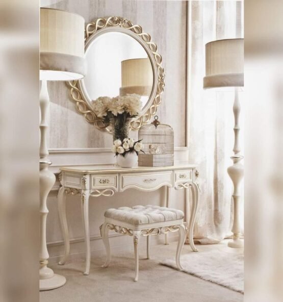 High gloss wooden finish aur floral golden work ka stunning design. Iska marble surface elegance ko aur enhance karta hai.