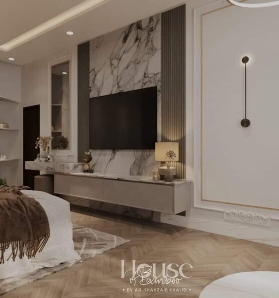 Contemporary design aur storage-friendly layout ke sath ye wall aapke lounge ko organized aur stylish banati hai.
