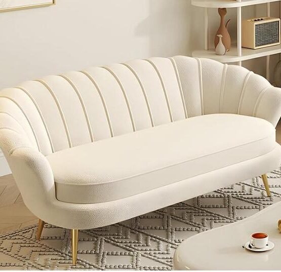 Soft velvet finish aur ribbed style design ke sath ye sofa ek premium look create karta hai. Cream shade aur golden base usay classy aur elegant banate hain. Yeh sofa aapke living space ko modern aur luxurious touch deta hai.